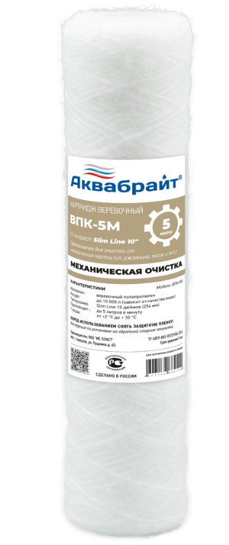 —Картридж Веревочный ВПК-5 М, АКВАБРАЙТ для механической очистки воды.
